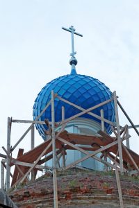 Сейчас будем приступать к ремонту кирпичной полусферы, на которой и держится барабан. Тес на леса пока есть, нужны другие материалы. Денег немного, как появляются, строим дальше. Сейчас нужны деньги на кровлю, чтобы закрыть полусферу.