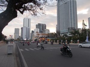 Вьетнам встретил нас в 5 утра теплым ветром с температурой воздуха + 27, равной температуре воды в море. Отель оказался в 200 метрах по прямой от моря, и из окна был прекрасный вид на залив с прибоем, так как накануне прошел шторм на островах Южно-Китайского моря. Приветливые работники на ресепшен говорили на английском (русский здесь не в ходу), не стали нас мучить до 12-00 заселения по графику и сразу дали номер. Вручив им в благодарность по шоколадке «Аленка», который здесь очень ценят, мы быстро поднялись на лифте в просторный номер, оценили его удобства и отправились на пляж Нячанга.