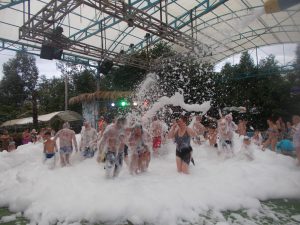 Со скалы она выносит тебя прямо на площадку к бассейнам с горками и другими виражами. Обед, дискотека и пенная вечеринка на закате заканчивают развлечения за день. В горах темнеет быстро. В 17-00 уже потемки. После фруктового ужина на выходе к автобусам нас развезли по отелям. А еще на обзорной экскурсии были представления со змеями, крокодилами.