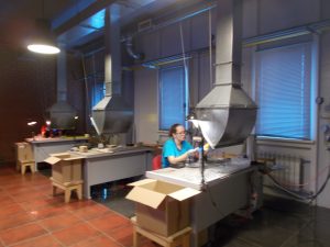 Опытный экскурсовод предложила всем снять верхнюю одежду в помещении мастер-класса и повела свою группу на экскурсию по фабрике. Юные туристы увидели весь процесс создания игрушки от стеклянной трубки до готовых заготовок для росписи красками. Особенно поразила детей работа мастеров над газовой горелкой, где из трехметровой стеклянной трубы и разборных форм получались готовые детали для работы художников по стеклу.