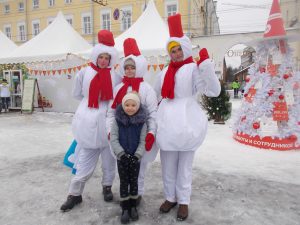 Два с половиной часа на фабрике пролетели как одна минута. И вот уже автобус привез группу на главную площадь города — площадь Минина и Пожарского. От Покровской улицы на всей площади до памятника летчику Валерию Чкалову на набережной Волги расположилась огромная новогодняя ярмарка.