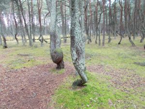 Но самое удивительное место косы — Танцующий лес. В прозрачном голубом сумраке сосны наклоняются и изгибаются, словно их клонит какая-то невидимая сила. С этим местом связаны привлекательные легенды и сказки. Местная легенда гласит: если пролезть через круги всех деревьев, можно избавиться от своих болезней. Туристы это воспринимают в прямом смысле, поэтому, чтобы уберечь робкие сосны от ран на коре и грубых прикосновений, уникальные растения огородили заборчиками. Порода этих деревьев не имеет сучков, стволы ровные, но изгибаются они необъяснимо под разным углом в разных направлениях в отличие от карельских берез, изогнутых ветрами в одну сторону.