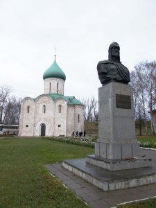 Он родился 30 мая 1221 г. в Переяславле и был крещен в Спасо-Преображенском соборе, где крещены многие переславские князья. Благодарные жители в 1958 г. установили у храма памятник Александру Невскому. Прототипом полководца скульптору послужил актер Н. Черкасов в одноименном фильме «Александр Невский», так как портрета князя в то время не было.