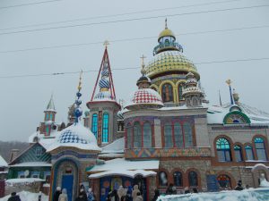 По дороге мы успеваем посетить Вселенский храм. Это музей всех религий под открытым небом. Здесь нет служб, но сам собор так красив и оригинален, что проехать мимо просто невозможно. Зодчий Ильдар Ханов под впечатлением от общения с Н. Рерихом решил построить такой храм, где представитель любого вероисповедания нашел бы свой уголок для личных молитв. Насколько это удалось архитектору, может судить каждый, посетив необычное сооружение.