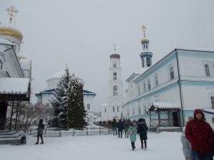 Утро 7 ноября выдалось дождливым. Хмурые тучи осыпали автобус градом холодных капель, но все надеялись, что скоро дождь закончится. Так и случилось — подъезжая к Переславлю-Залесскому, мы увидели широкую радугу, раскинувшуюся над златоглавыми куполами монастырей и соборов. Солнце вышло из-за туч, показывая город во всей красе. Старинный русский город, входящий в Золотое кольцо России, на фоне голубого озера был действительно очень хорош! Экскурсовод уже ждала нас в Горицком монастыре.