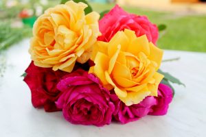 Разговор об этих восхитительных цветах мы ведем на скамеечке в тени яблони. После дождя воздух свеж как никогда, легкий ветерок разносит прекраснейший аромат … французских духов. Это благоухают розы.
